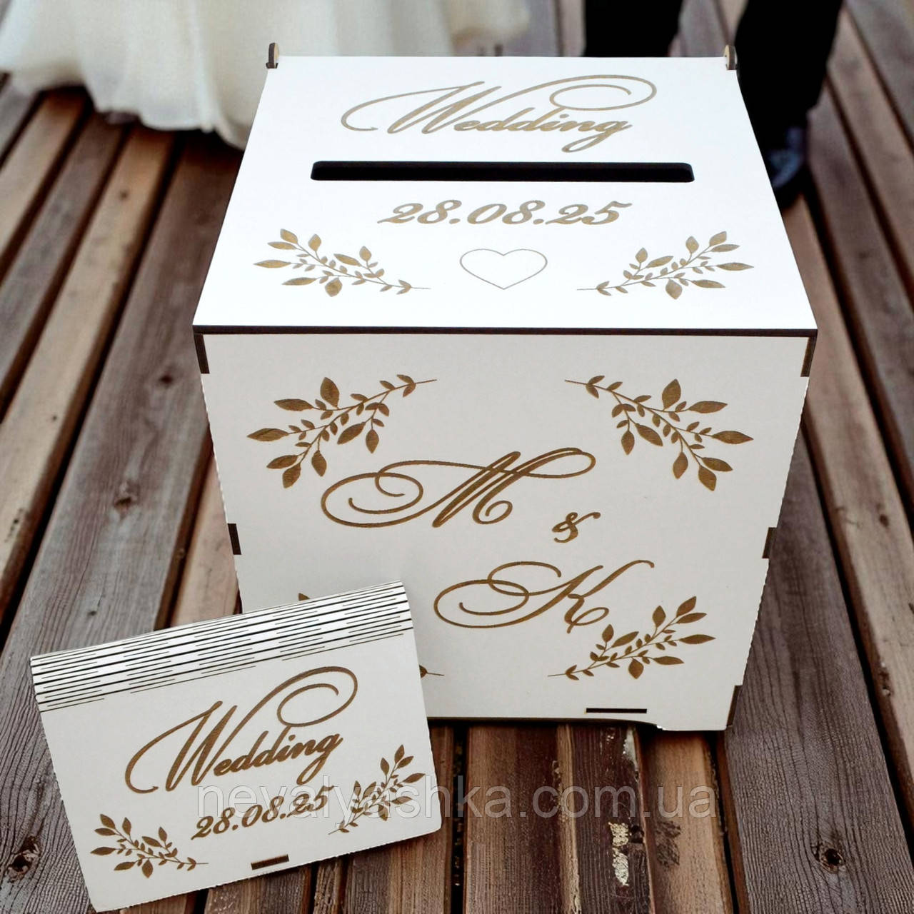 Весільна Скарбничка "Іменна з Ініціалами та Датою Весілля" + Підставка для Обручок "Аутентична" .